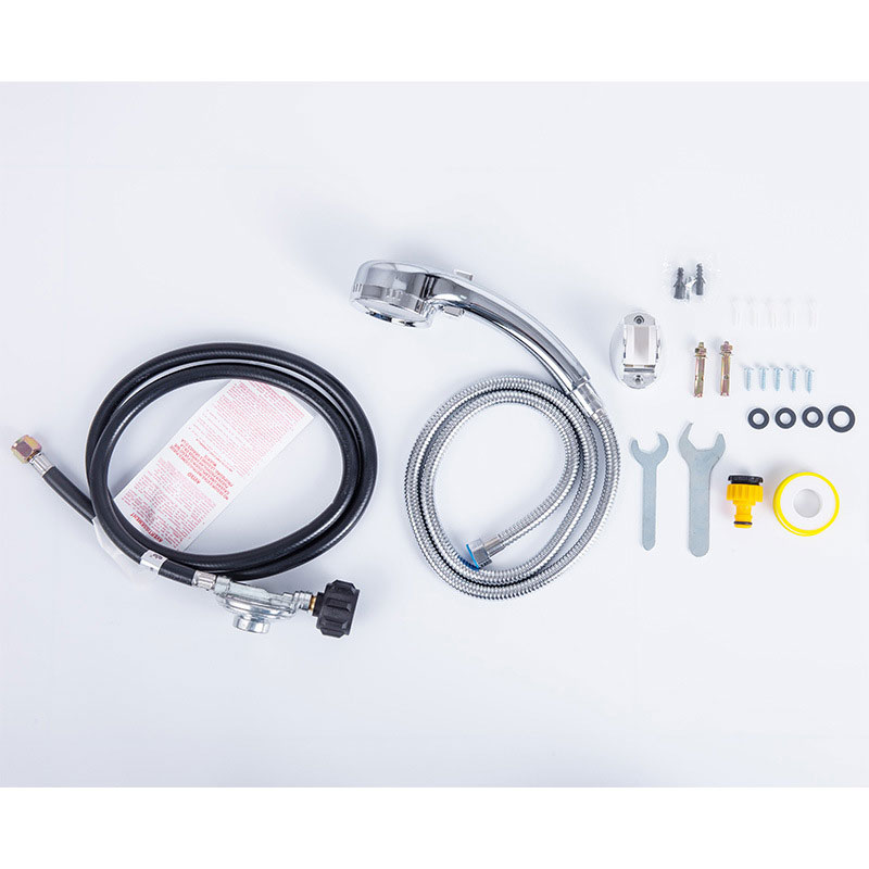 5) গ্যাসের পায়ের পাতার মোজাবিশেষ এবং নিয়ন্ত্রক, ঝরনা পায়ের পাতার মোজাবিশেষ, ঝরনা মাথা, ইত্যাদি সহ ক্যাম্পিংয়ের জন্য আনুষাঙ্গিকগুলির একটি সম্পূর্ণ সেট।